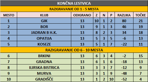 ILIRSKA BISTRICA – GRADIŠČE 10:6
